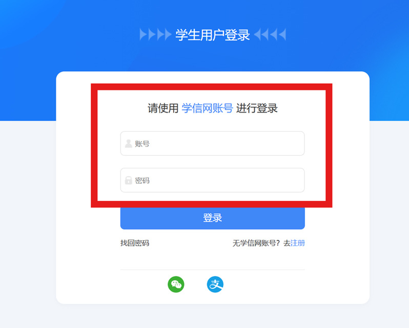 3.输入学信网账号密码,若忘记账号密码可点击下方找回密码,进行密码找回。
