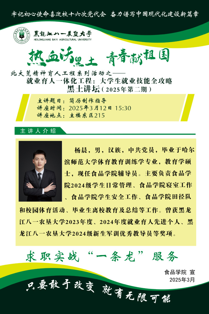 就业专栏|食品学院2025年黑土讲坛活动预告