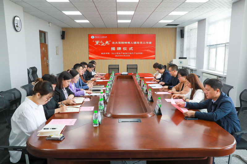 5月23日上午,食品学院(北大荒农产品加工现代产业学院)“黑土之光”北大荒精神育人辅导员工作室揭牌仪式在生物馆3050会议室举行。