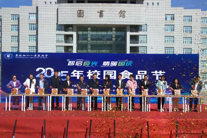 9月27日,在热烈庆祝中华人民共和国成立 76 周年的喜庆氛围中,智启食光、情暖国庆﹣﹣黑龙江八一农垦大学2025年校园食品节成功举办。校党委副书记高宏、副校长王长远、副校长赵达、大庆市龙凤区副区长张斯文和食品学院师生代表共3000余人欢聚一堂,品鉴食品、欣赏表演,礼赞新时代、共筑中国梦!
