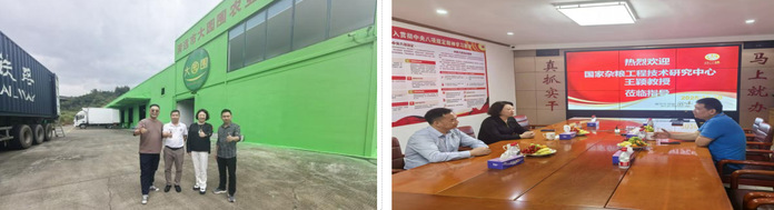 在连山众创农贸有限公司,团队结合朱蓓薇院士关于国家现阶段大力倡导的药食同源高效利用的报告指导精神,建议企业开发“豆基杂粮”复配药食同源健康食品。企业提出对“豆基杂粮”复配药食同源的预混粉、不同生理期的女性营养粉、“豆基杂粮”膳食纤维肉等项目的转化需求,并希望依托丝苗米、番薯等本地资源进行深度开发。王颖教授建议其结合民族特色打造差异化“治未病”产品,并加强标准化与品牌建设。