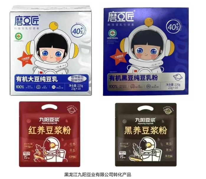 针对市场上豆浆类饮品蛋白质和膳食纤维含量低,产品溶解性差、风味单一、生物功效低等问题,辅以杂粮杂豆等优质高纤辅料,并突破生物精准富集、活性组分保持、精准复配等关键技术,增加了豆浆粉类产品中总膳食纤维、可溶性膳食纤维、蛋白质和多酚含量,解决了产品蛋白含量低、溶解难、生物功效低的技术难题,使得产品蛋白含量达到45%以上。该产品实现在黑龙江九阳豆业有限公司的转化。