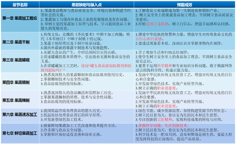 课堂深度参与教学:以产出导向的教学模式,针对线上学习内容进行回顾和检查,融合课程思政,适当采取小组讨论的方式,让学生具备应用、分析和评价园产品加工知识的能力。