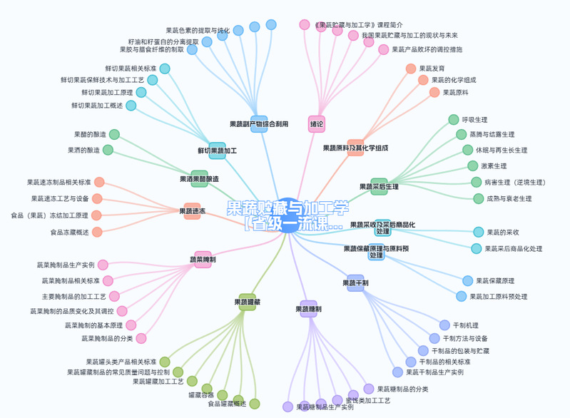 《园产品加工学》是研究新鲜果蔬原料鲜与加工的一门专业课程。在了解果蔬原料的采后生理与加工特性的前提下,采取科学的方法来保持果蔬的优良品质。本课程内容包括果蔬贮藏与加工基础知识与基本原理、果蔬采后生理与商品化处理、果蔬贮藏技术、果蔬加工技术等内容。