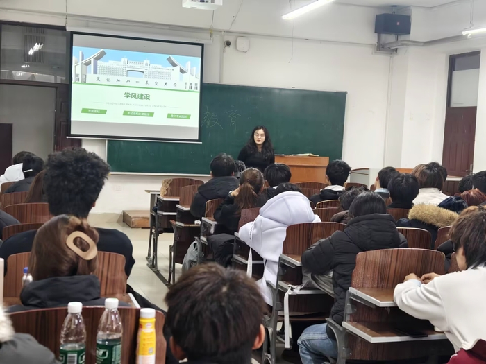 食品学院于11月11日开展了学风建设新生入学教育活动,本次活动由宋凌羽老师主讲,2025级全体新生积极参与。