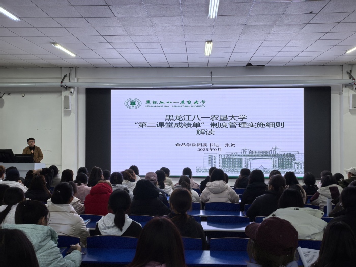 为了使2025级新生快速地融入大学生活,对我校第二课堂的了解,尽早参与到丰富多彩的活动中,食品学院于10月27日在主楼128开展了“第二课堂成绩单”制度管理实施细则解读专项讲座,由食品学院团委书记张贺老师主持讲解,2025级全体新生共同参加。