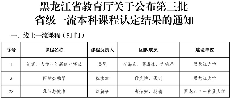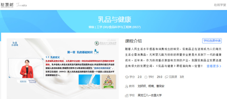 2023年《乳品与健康课程》(智慧树平台)被评为黑龙江第三批省级线上一流本科课程。