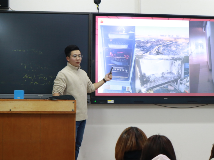 讲座中,陈老师结合自身管理经验,系统讲解了灭火器、消防栓等常见消防设施的正确使用方法,普及了消防安全基础知识,并针对宿舍、实验室等重点场所的防火要点及应急疏散流程作了细致说明。现场学生认真聆听,并在互动环节踊跃参与实操演练与问答交流,课堂气氛活跃,反响热烈。